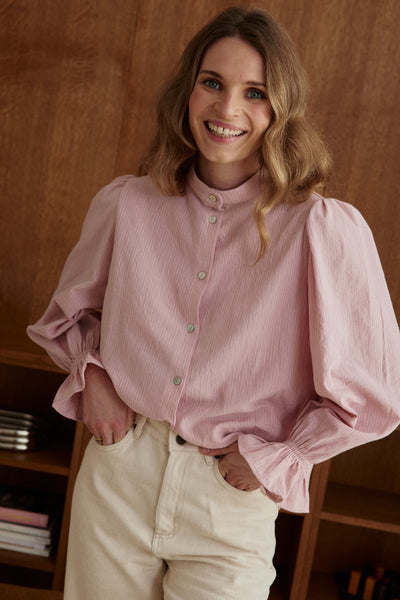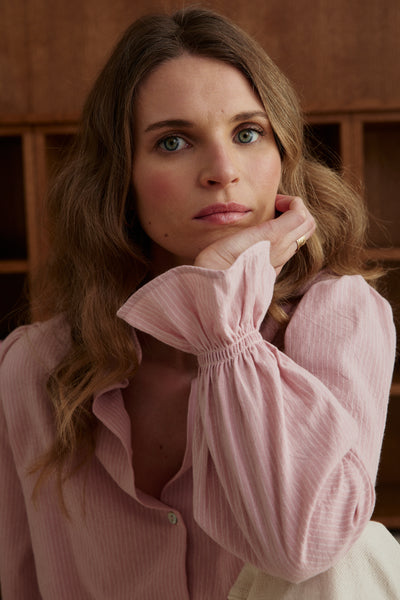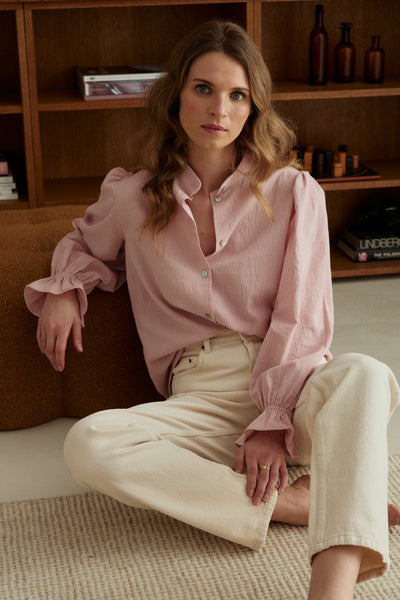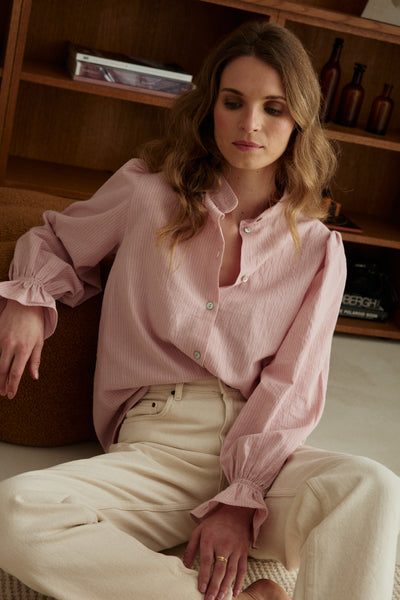 Irrésistible avec ses larges volants aux poignets, on craque sur ce coloris hyper doux et frais pour le printemps. Cette chemise est un bonheur à porter et regorge de jolis détails qui la rendent unique ! On apprécie son tissu doux et confortable, qui ne se froisse pas.