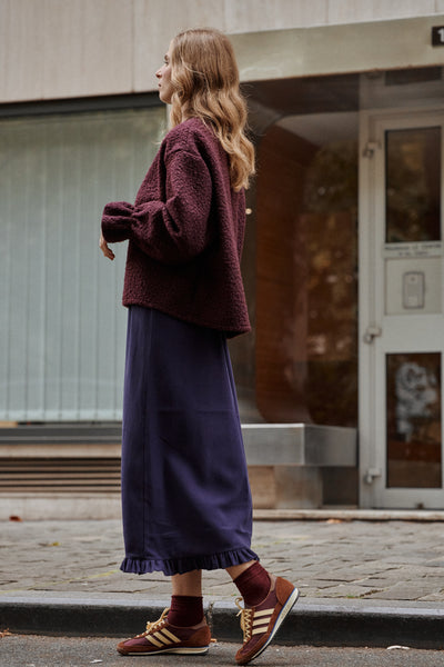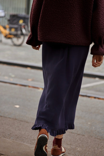 Cette jolie jupe associe style et confort. Vous tomberez sous le charme de sa matière fluide et douce en pure viscose et de son petit volant au bas de la jupe. Comment ne pas craquer ? Son petit plus, sa taille élastiquée ! Se marie à merveille avec le reste de la collection !