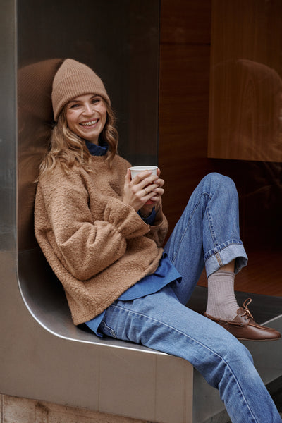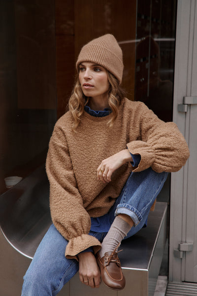 Ce pull que l'on aime pour son volume raffiné et ses détails délicats. Il se distingue par la douceur de son tissu effet laine bouclée, ses larges volants en bas de manches qui le rendent ultra féminin, et sa coupe oversize pour un look parfait ! Ultra confortable, il reprend les codes du sweat Nuage dans une version hivernale encore plus cosy, plus chaude et toujours plus douillette, parfaite pour vous garder au chaud cette saison ! En somme, le pull facile à porter qui ne laissera personne indifférent !