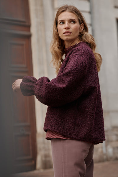 Ce pull que l'on aime pour son volume raffiné et ses détails délicats. Il se distingue par la douceur de son tissu effet laine bouclée, ses larges volants en bas de manches qui le rendent ultra féminin, et sa coupe oversize pour un look parfait ! Ultra confortable, il reprend les codes du sweat Nuage dans une version hivernale encore plus cosy, plus chaude et toujours plus douillette, parfaite pour vous garder au chaud cette saison ! En somme, le pull facile à porter qui ne laissera personne indifférent ! Il se marie à merveille avec le reste de la collection !