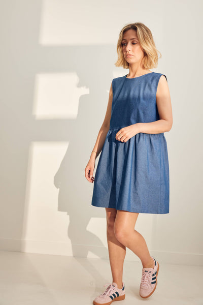 La robe PÉPITE porte bien son nom, absolument irrésistible, c'est la petite robe en denim qu'on a toutes envie de porter cet été ! On adore le fait de pouvoir la porter avec les noeuds devant ou dos et ajuster les liens selon nos envies. En sandales ou en baskets, elle sera tout simplement parfaite.