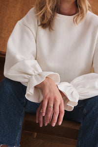 Vous rêviez d’un sweat douillet mais raffiné ? A la fois décontracté grâce à la douceur de son coton molletonné et féminin grâce à ses larges volants en bas de manches, ce sweat va devenir votre meilleur ami. À porter avec simplicité et style toute l’année !