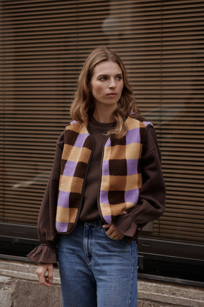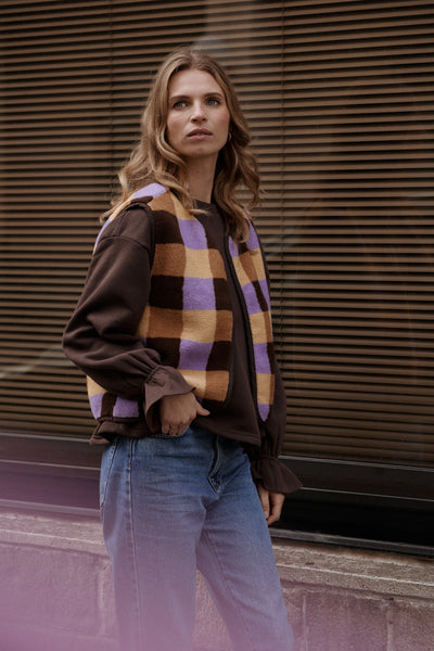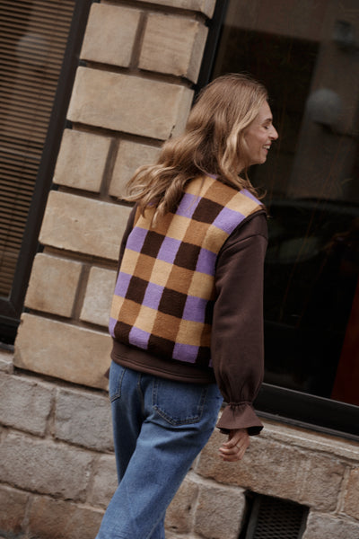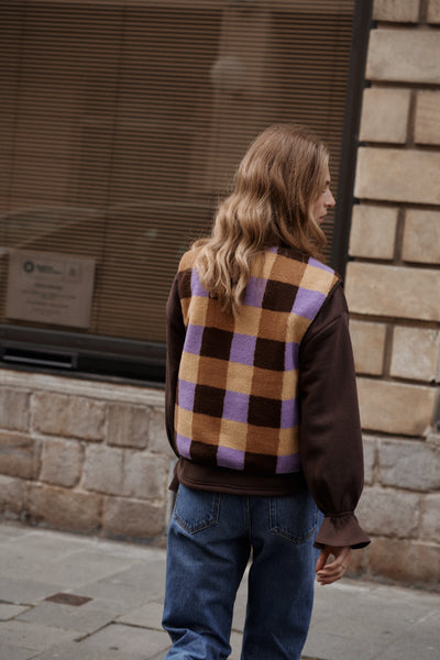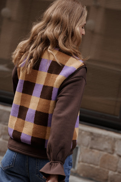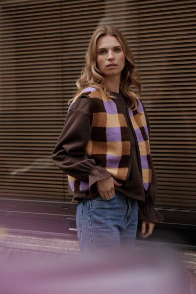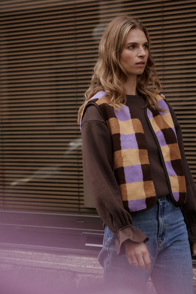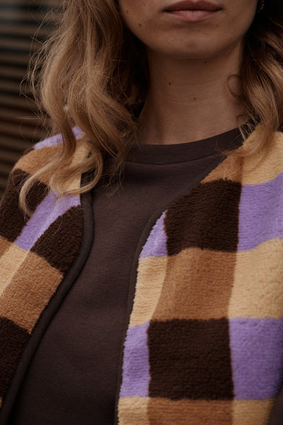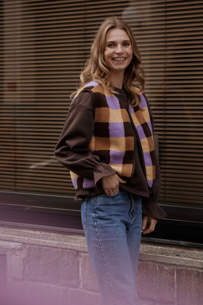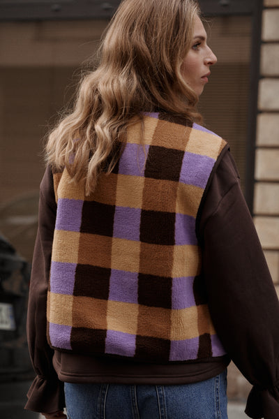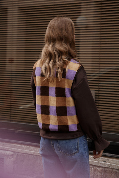 Véritable pièce coup de coeur, impossible de ne pas craquer pour cette petite veste sans manche ! Réconfortante à souhait, sa matière lui donne confort et douceur. Son imprimé la rend irrésistible et sa coupe fait d'elle une vraie pépite ! Parfaite pour réchauffer un look !